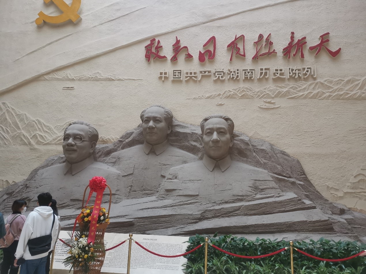 在讲解员的引导下,同学们参观了560多个党史事件和480多位湖南党史人物,通过“走着读”的形式,充分领会学习到了中国共产党领导湖南人民革命、建设、改革所取得的辉煌成就和宝贵经验。党史陈列馆布展以“敢教日月换新天——中国共产党湖南历史陈列”为主题,前三部分采用编年体形式,分别以“开辟新天地”、“描绘新画卷”、“谱写新篇章”为题,展现了中国共产党革命、建设、改革的三个历史时期,第四部分“三湘群英谱”则用专题形式,介绍以毛泽东为代表的湘籍和长期在湘工作的优秀党史人物,其中包括党和国家领导人、人民军队高级将领、著名英烈代表、各领域杰出代表和历任湖南省委书记。
